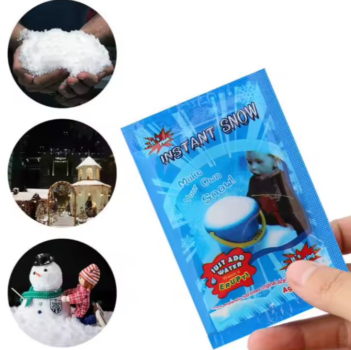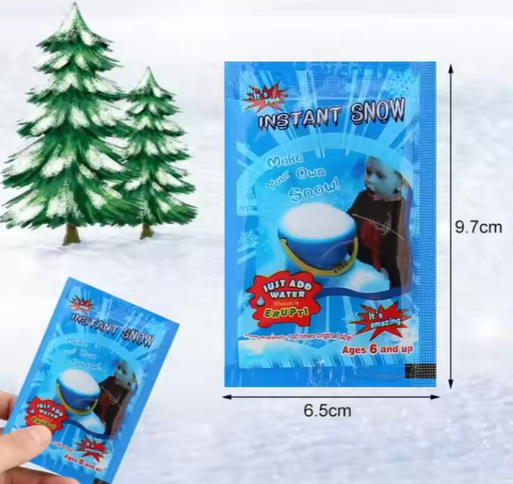 - Just add water to turn into a white substance that looks like real snow.