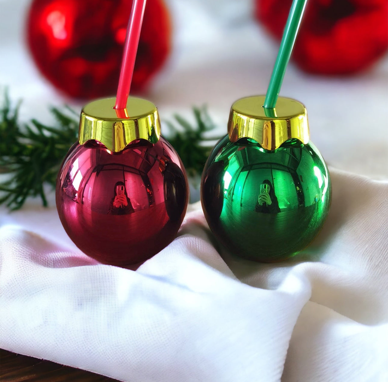 Introducing the perfect addition to your Christmas celebrations - the Acrylic Bauble Tumbler! These adorable tumblers are not only festive, but also practical for any holiday event. Available in classic red and green, each tumbler comes with a gold topper and matching straw. The gold lid screws on securely, ensuring no spills during your festivities. With a capacity of 350ml and BPA-free material, these tumblers are both functional and safe. Measuring approximately 7.6cm in diameter and height, they are the perfect size for any drink. Don't miss out on these must-have tumblers.